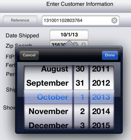 When a ship date is needed a traditional iPad calendar pops up. Whatever device or operating system this app runs on the user sees familiar controls. This is crucial for simple modern applications (apps).