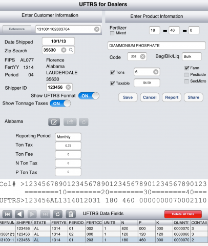 In addition, the output can now be in the new AgGateway XML standard. As more states adopt this standard uDeal will be ready. XML is better suited for larger companies servicing many states. It is critical that all states adopt Paperless Fertilizer Tonnage Reporting for this program to be successful. The standard UFTRS format can be supported in an Excel spreadsheet but XML requires a program like uDealMobile.